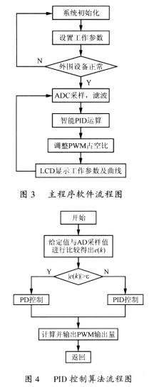 本系統包括PID控制器,PWM輸出,AD采樣,構成單閉環系統。前端三相交流電源輸入到開關電源整流模塊,經整流濾波后輸出平穩的直流電壓。該直流電壓直接輸出至IGBT模塊。高精度AD轉換器將后端輸出的電壓電流信號由模擬信號量變為數字量供給S3C44BO進行數字PlD運算,經過PID控制運算后,由S3C4480輸出PWM至IGBT從而構成一個閉環系統,控制電壓電流穩定輸出,從而實現開關電源控制系統。