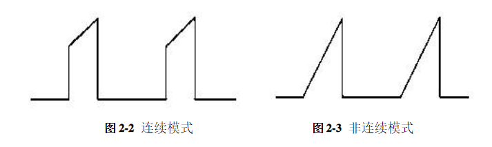T1—矩形脈沖寬度。從式中可以看出:當(dāng)保持Um和T不變的時(shí)候,我們只要能夠使脈沖寬度隨輸出電壓的增大而變窄就可以減小U0從而保持輸出電壓的穩(wěn)定。2.2開關(guān)電源的工作模式開關(guān)電源[9]的工作模式可以分為兩種:連續(xù)模式(CCM)和不連續(xù)模式(DCM)。它們的變壓器初級(jí)電流波形如圖2-2、2-3所示: