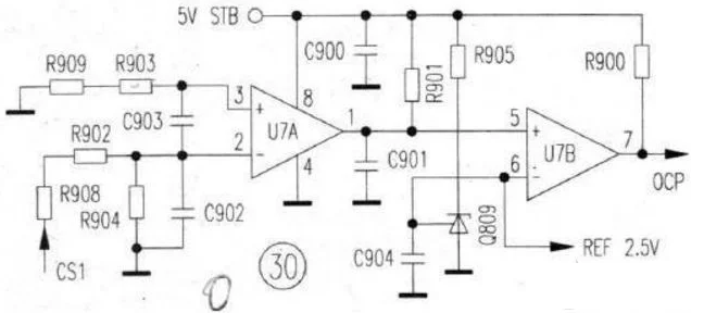 1、振動回路:開關變壓器的主繞組N1、Q1的漏--源極、R2(作業電流檢測電阻)為電源作業電流的通路;本機發動電路與其它開關電源(發動電路由降壓限流電阻組成)有所不同,發動電路由C5、D3、D4組成,供給一個“瞬態”的發動電流,二極管D2吸收反向電壓,D3具有整流作用,保證加到U1的7腳的發動電流為正電流;電路起振后,由N2自供電繞組、D2、C5整流濾波電路,供給U1芯片的供電電壓。這三個環節的正常運行,是電源可以振動起來的先決條件。