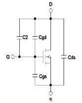 使用MOS管操控沖擊電流能夠克服無源約束法的缺陷。MOS管有導通阻抗Rds_on低和驅動簡單的特色,在周圍加上少數元器材就能夠做成沖擊電流管束電路。MOS管是電壓操控器材,其極間電容等效電路如下圖所示: