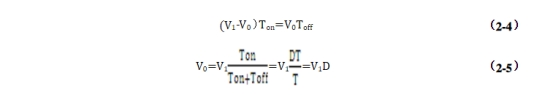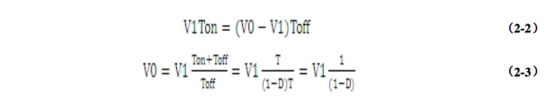 現在來講講開關電源的電路作業原理:Boost電路即升壓電路,當Q1導通時,能量從輸入電源流入貯存于電感L1中,此刻二極管D1反偏,負載由濾波電容C1供應能量,將C1中貯存的電能(C1V02/2)釋放給負載R1。當Q1截止時,電感L1中電流不能驟變,此刻二極管D1導通,電感中貯存的能量(L1I2/2)經二極管D1,流入電容C1,并供應負載R1。根據電感的伏秒平衡,在一個周期內電感的伏秒乘積和為零。假如Q1導通時刻Ton越大,那么Q1截止時提供應負載的電壓就會越大。下面經過詳細的計算來加深了解:根據伏秒平衡有式(2-2)、(2-3)。